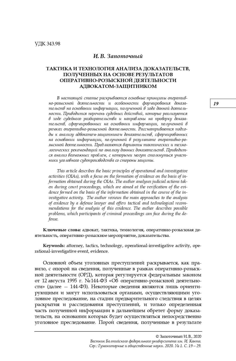 И. В. Запоточный 2020